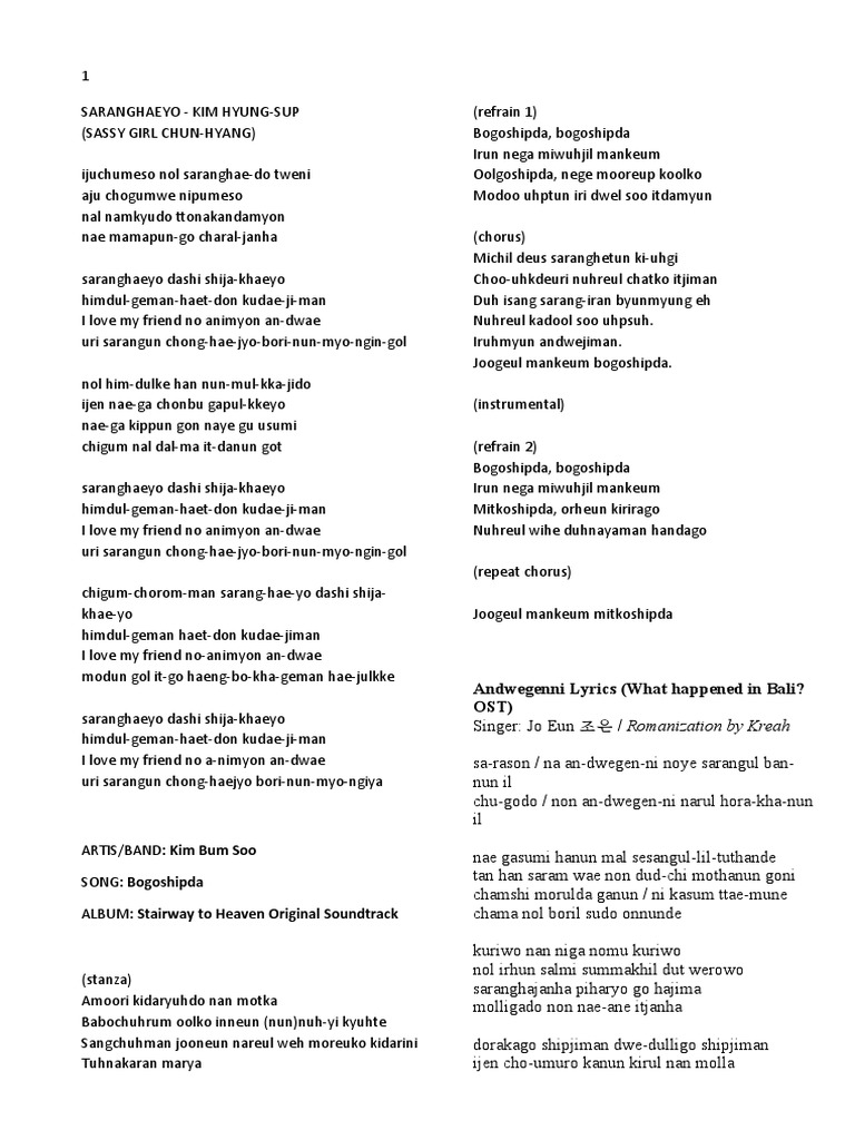 Bo Go Shipda Ost Stairway To Heaven Lyrics And Music By Kim Bum Soo Arranged By Afreejonk
