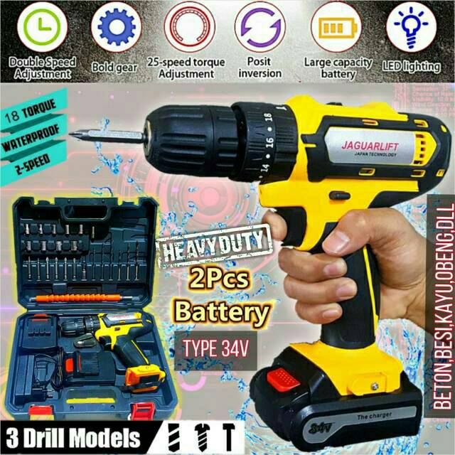 Impact Drill Bor Baterai Cordless Jaguarlift Beton Besi Kayu Japan Qualiti Original Shopee Indonesia