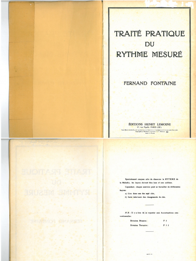 Fontaine Traite Pratique Du Rythme Mesure Pdf Pdf Free Download