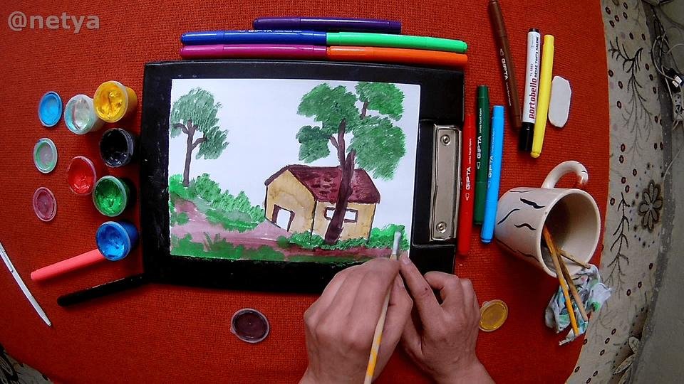 Easy Landscape Drawing With Gouache Paint Guaj Boya Ile Kolay Manzara Cizimi Steempeak