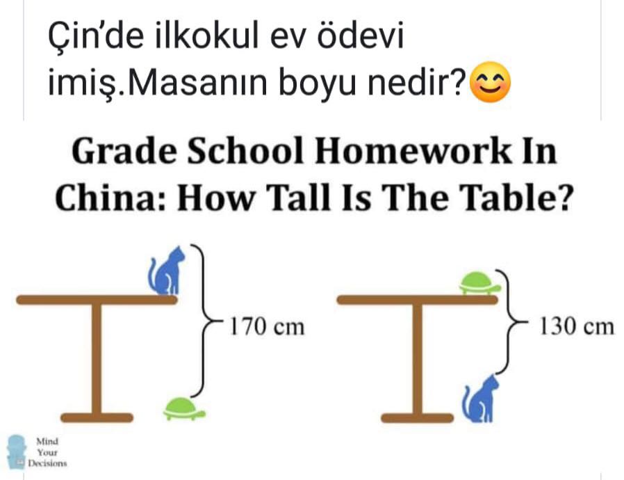 Sedat On Twitter Cin De Ilkokul Sorusu Masa Nin Boyunu Bulunuz Kedi Ve Kaplumbaga Yi Da Ben Soruyorum